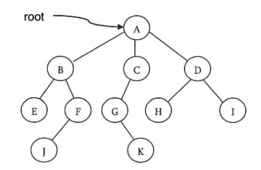 예시: A, C, G는 K의 조상 노드이며, K는 A의 자손 노드이다.